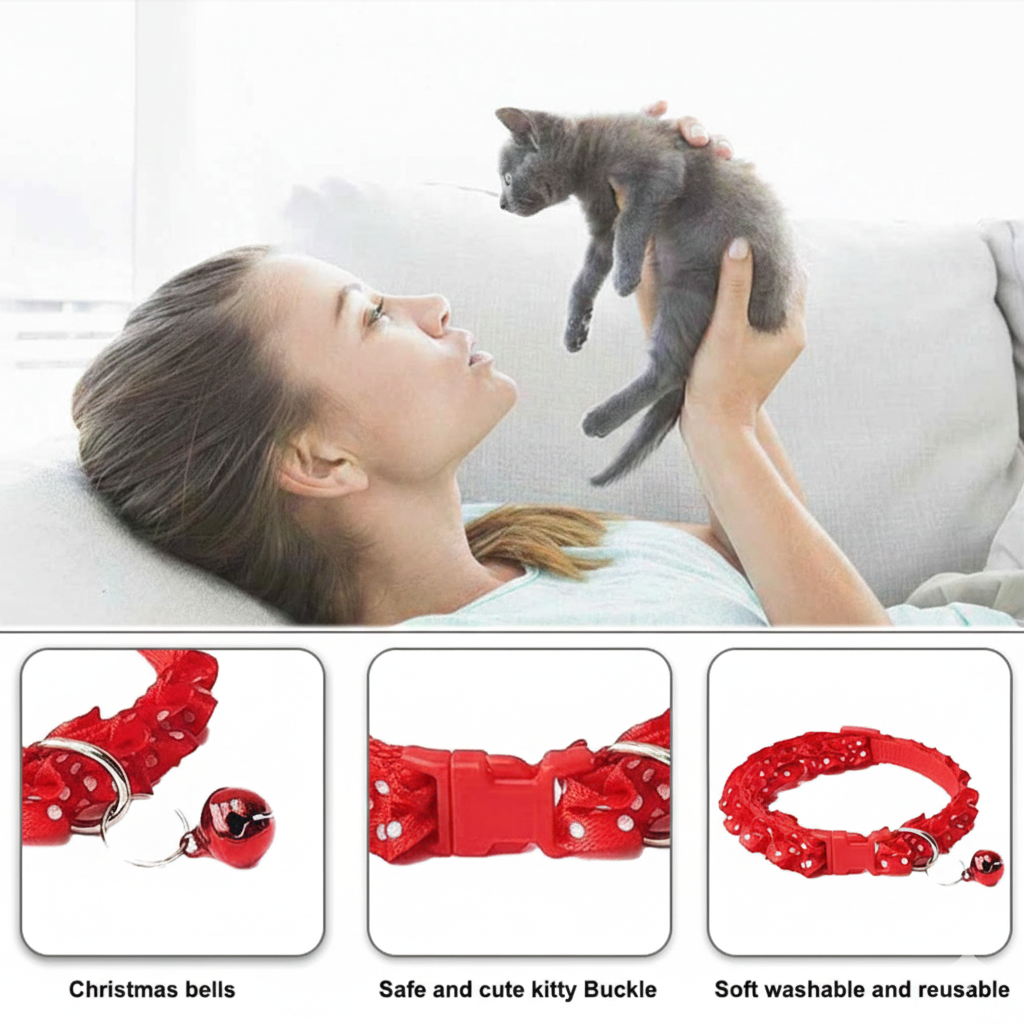 • Adjustable Comfort Strap: Easily adjusts to fit neck sizes of kittens, adult cats, and small puppy breeds, providing a secure yet non-restrictive fit.